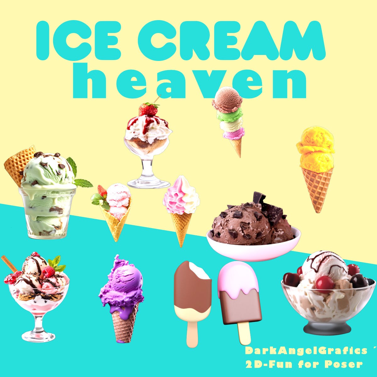 Here you get 12 very simple static 2-D props for using with all Poser versions.